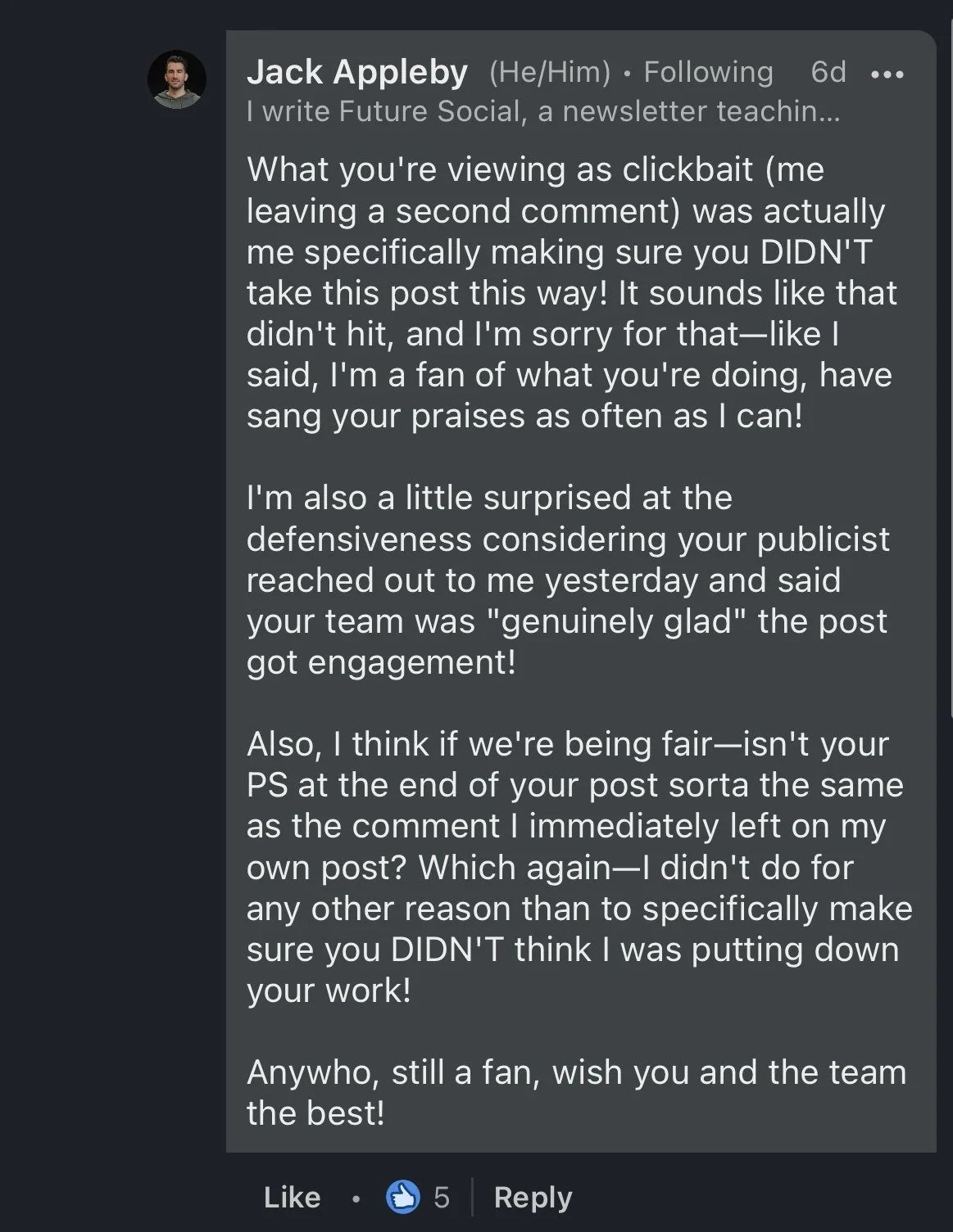 Jack Appleby is a social media marketer with his own email newsletter, Future Social, and over 50,000 subscribers. And when it comes to his opinion on social media marketing, he likes to air it out.